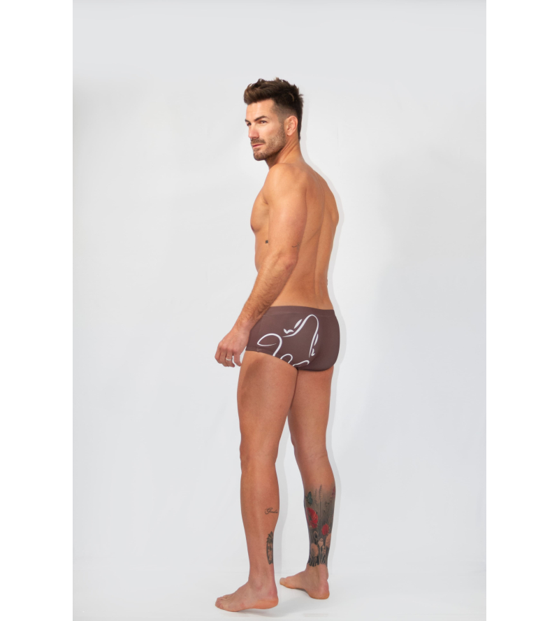 5. Bañador Trunk Zanzibar marrón logo en blanco