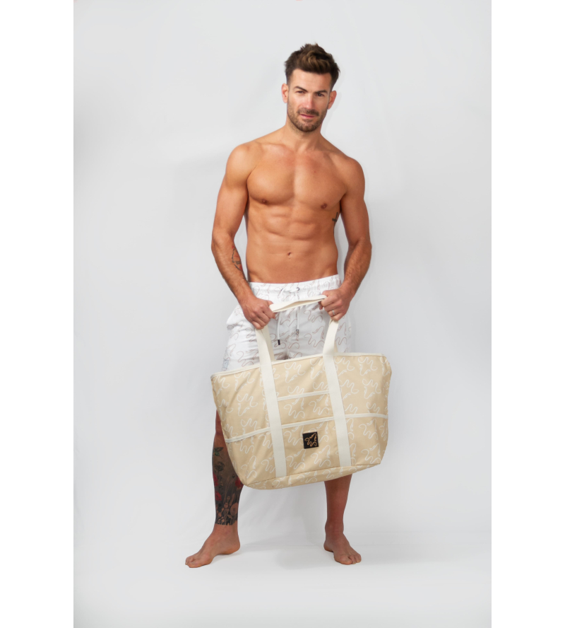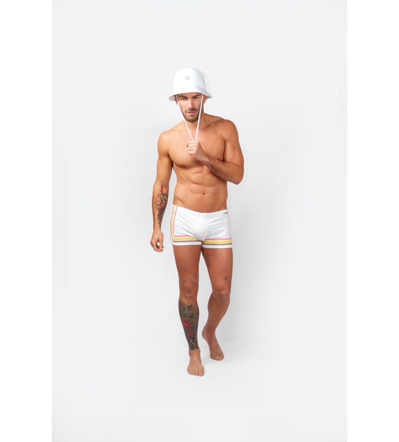 3. Bañador Trunk Zanzibar blanco logo en dorado